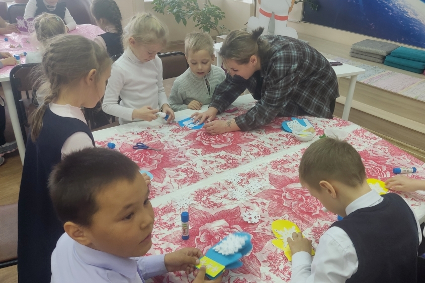 А затем под руководством библиотекарей юные читатели превратились в настоящих мастеров. На творческом занятии каждый смог создать свою собственную открытку для Деда Мороза. Из плотного картона, украшенного сверкающими снежинками и разноцветными стразами, получились настоящие шедевры – яркие, искренние и полные самых добрых пожеланий.