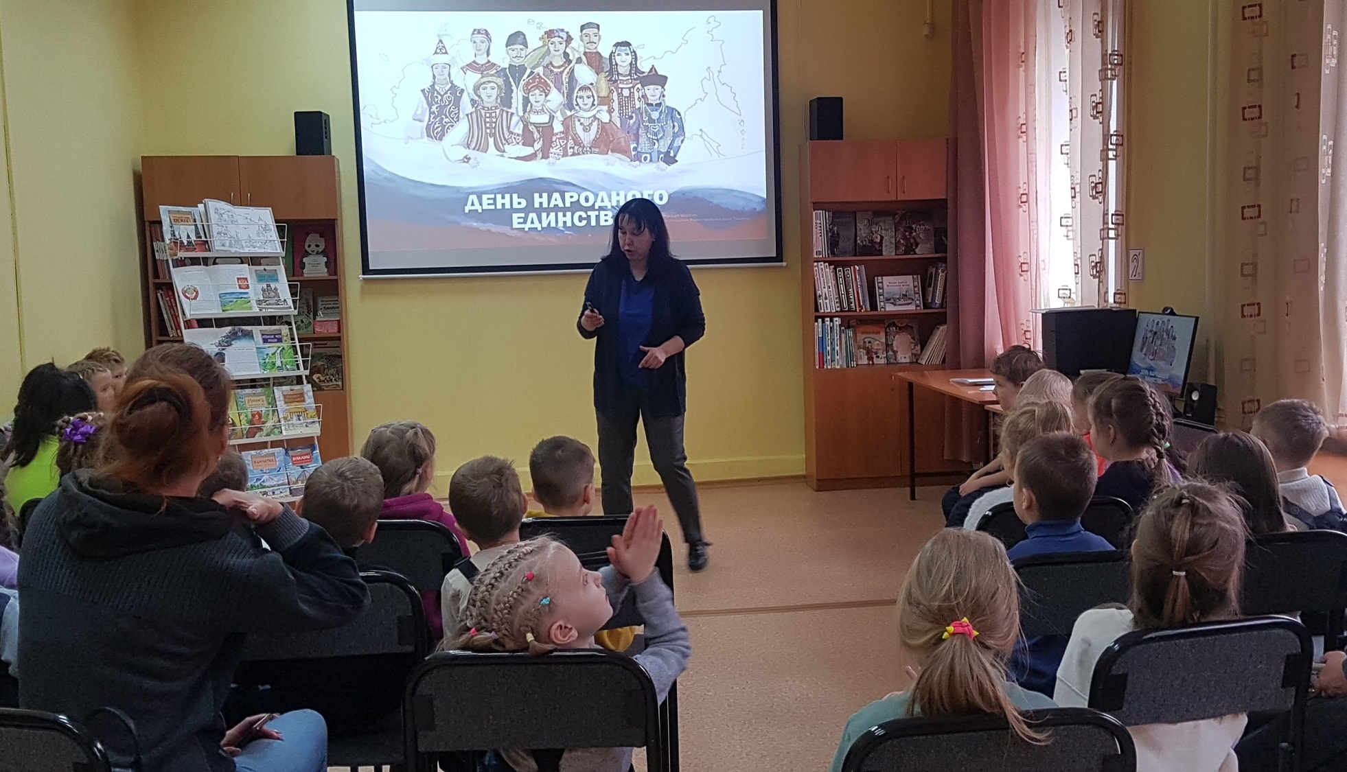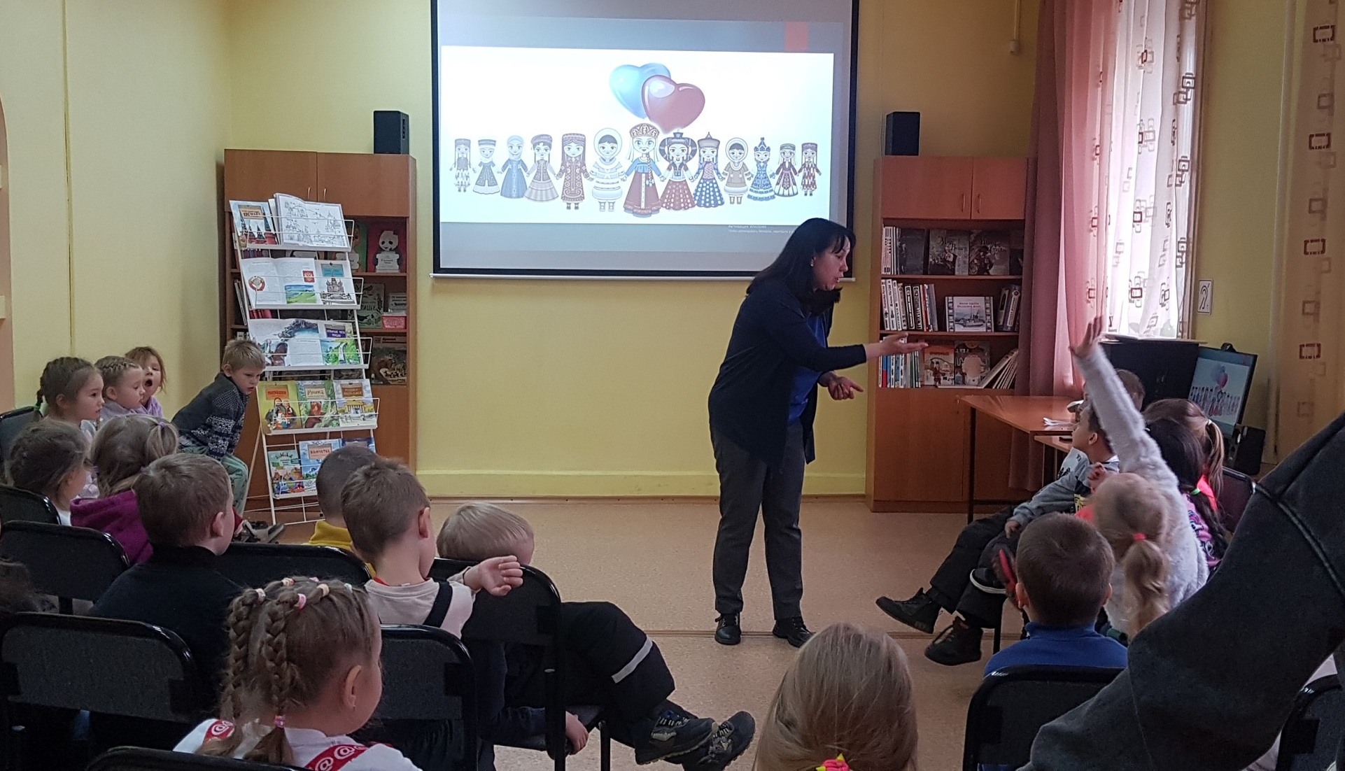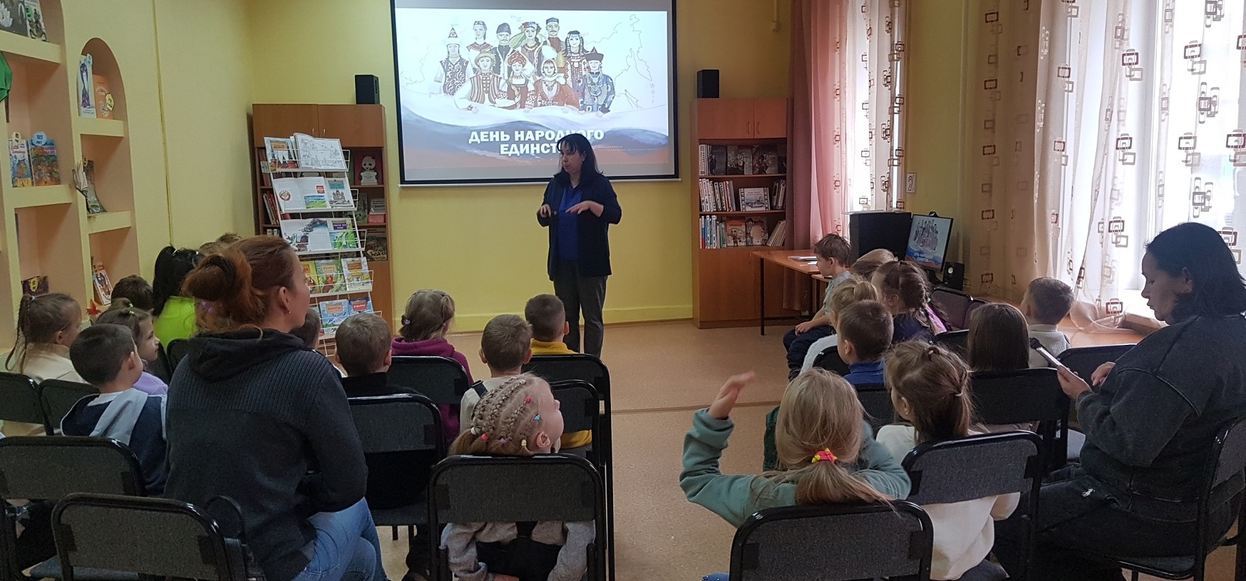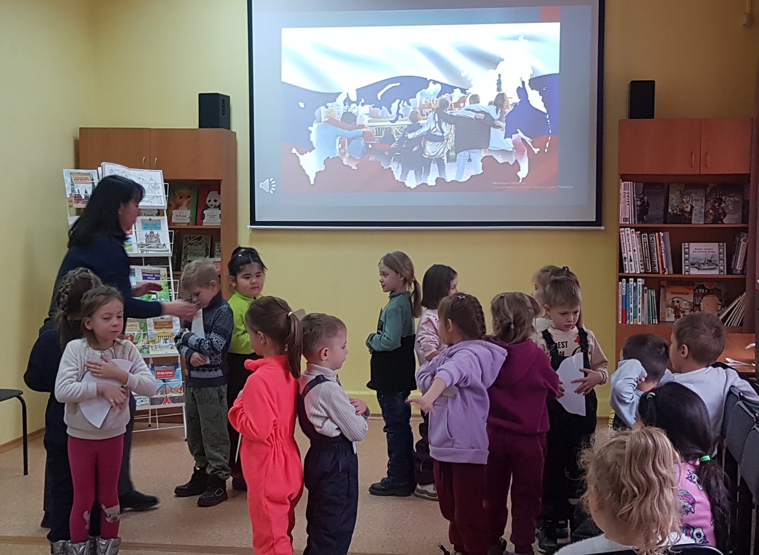 В Центральной детской библиотеке им. Аркадия Гайдара для дошколят детского учреждения № 94 ко Дню народного единства был проведен хоровод дружбы «Мы вместе – мы едины».