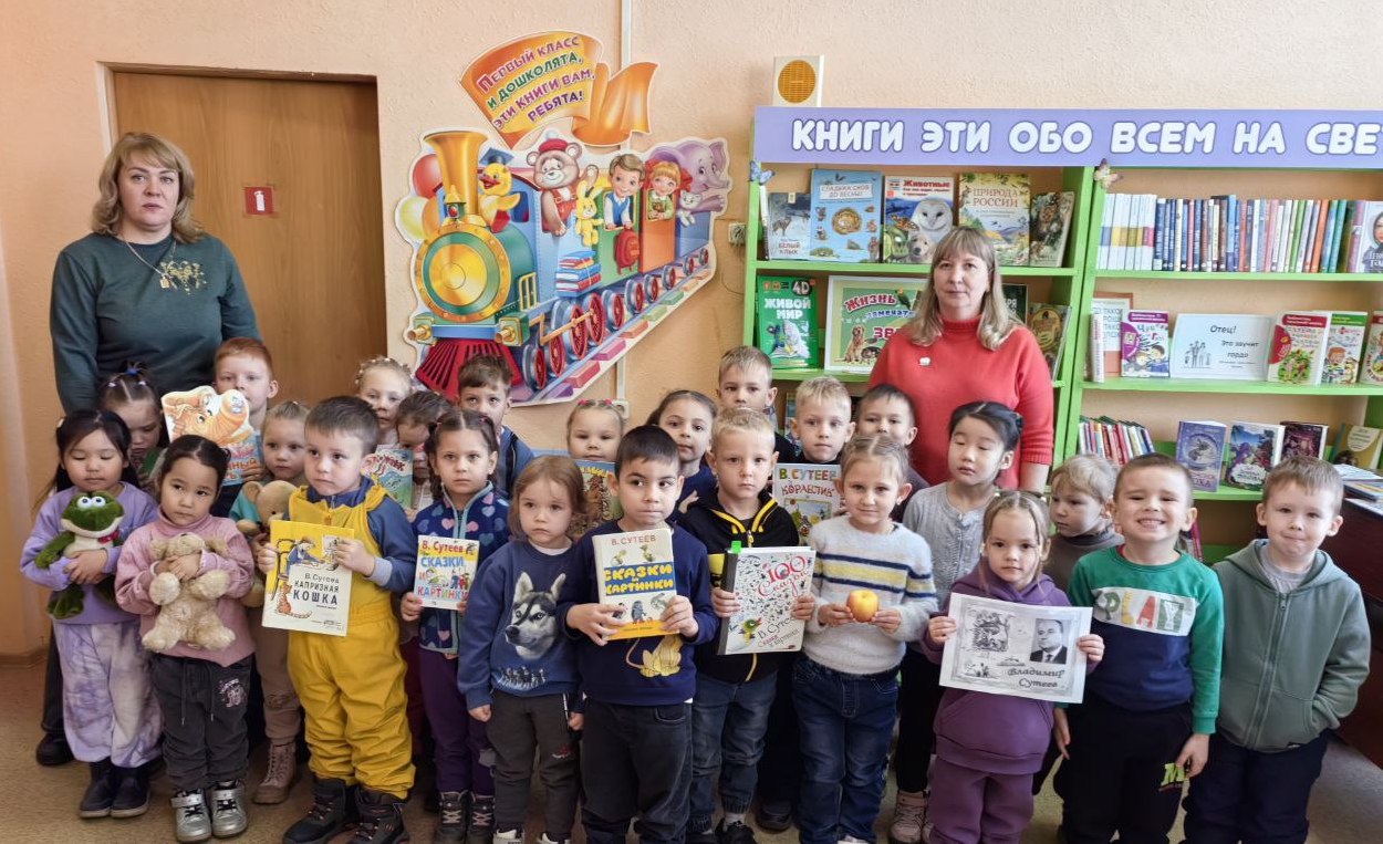 23 октября в детской библиотеке № 8 было шумно и весело: в гости пришли самые юные читатели – воспитанники детского сада № 74, – чтобы окунуться в волшебный мир сказок Владимира Григорьевича Сутеева.