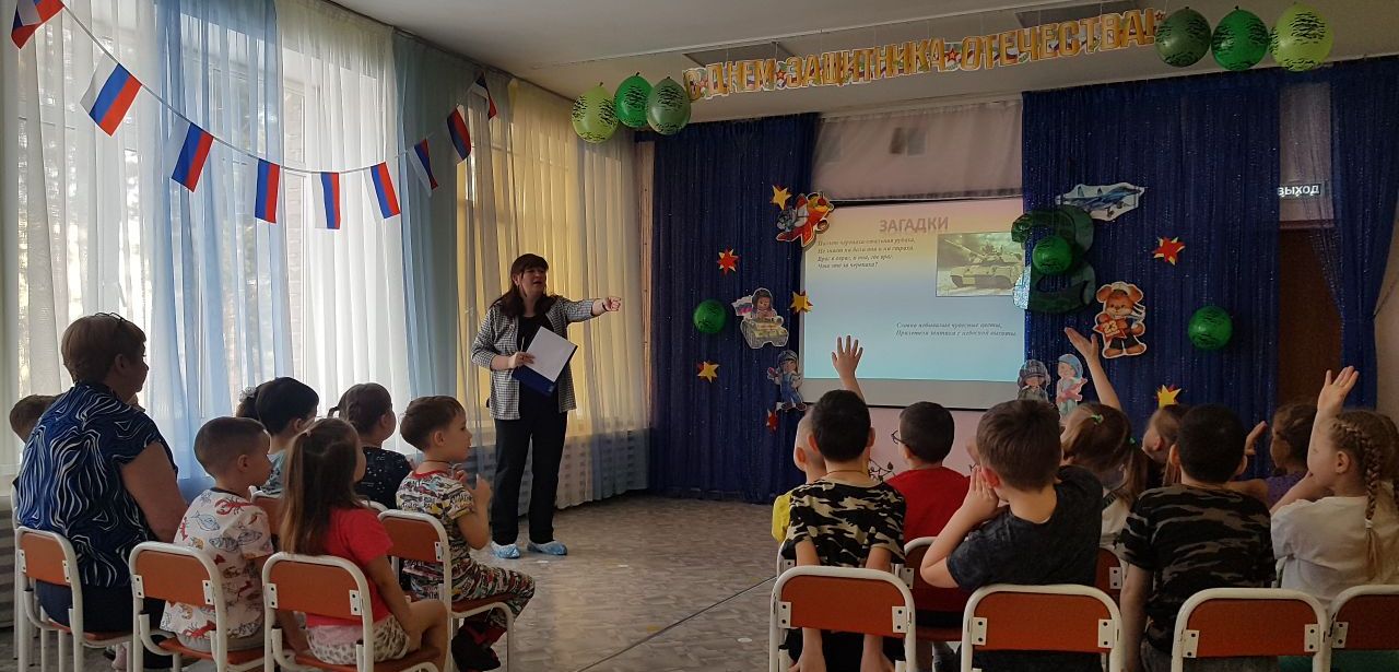 Сотрудники Центральной детской библиотеки им. Аркадия Гайдара побывали в гостях у малышей из детского сада №71 и провели познавательный игровой час «23 февраля – славный день календаря», посвященный Дню защитника Отечества.