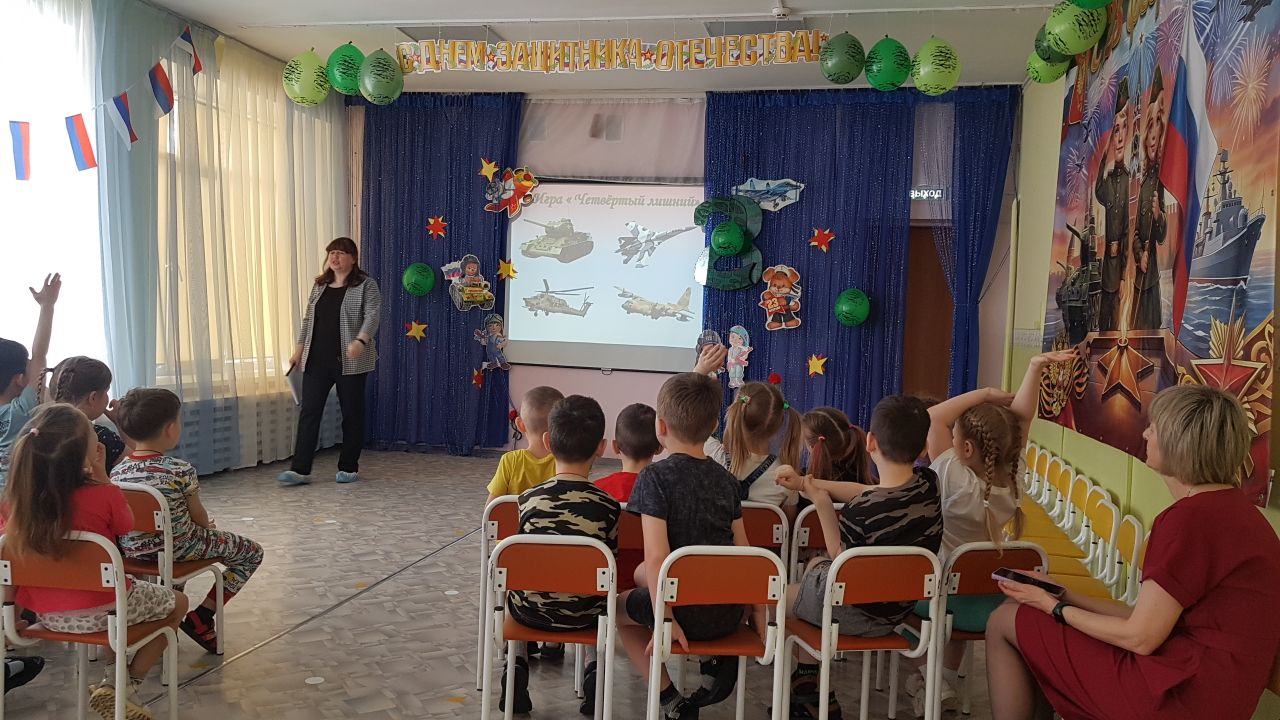 В ходе мероприятия дети отгадывали загадки, играли в дидактические игры «Четвертый лишний», «Что делают солдаты?», «Качества солдата».